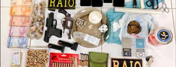 Por volta das 16h, os raianos foram informados sobre um imóvel abandonado que estaria sendo utilizado como ponto de tráfico de drogas. Imediatamente, os policiais militares seguiram até o imóvel, onde encontraram sobre uma mesa 5,93 g de maconha, 828 g de cocaína e 130 g de haxixe, além de 21 munições .40, duas balanças de precisão, um aparelho celular e material para embalar as drogas.