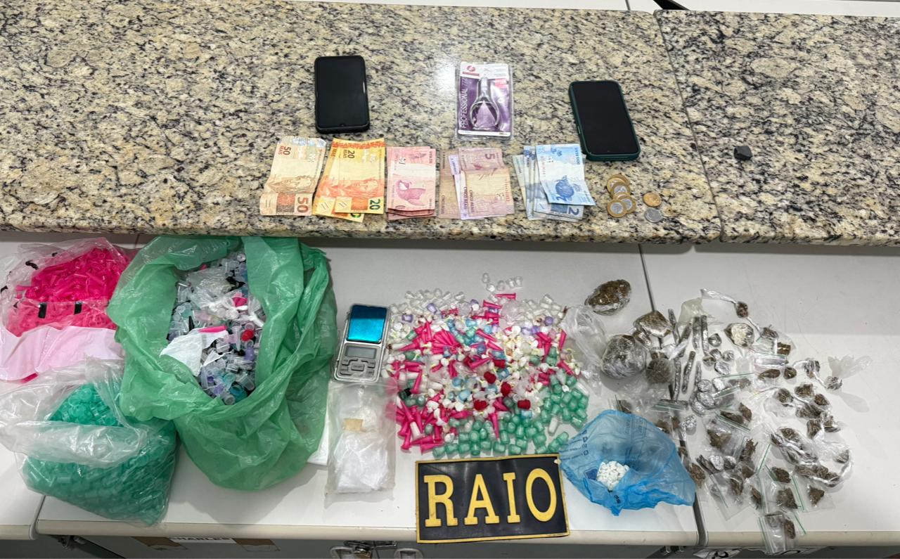 Durante o patrulhamento de rotina, os policiais militares localizaram dois indivíduos que estavam em uma motocicleta em atitude suspeita. Durante a abordagem, os policiais militares encontraram com eles 150 gramas de maconha, 31 gramas de cocaína e 17 gramas de crack, dois celulares, uma motocicleta, uma balança de precisão, uma certa quantia em dinheiro e outros objetos.