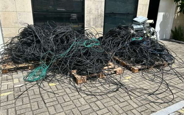 Durante a ação, 621 kg de fios e equipamentos, que estavam sendo utilizados de forma irregular em uma rede clandestina, foram recolhidos