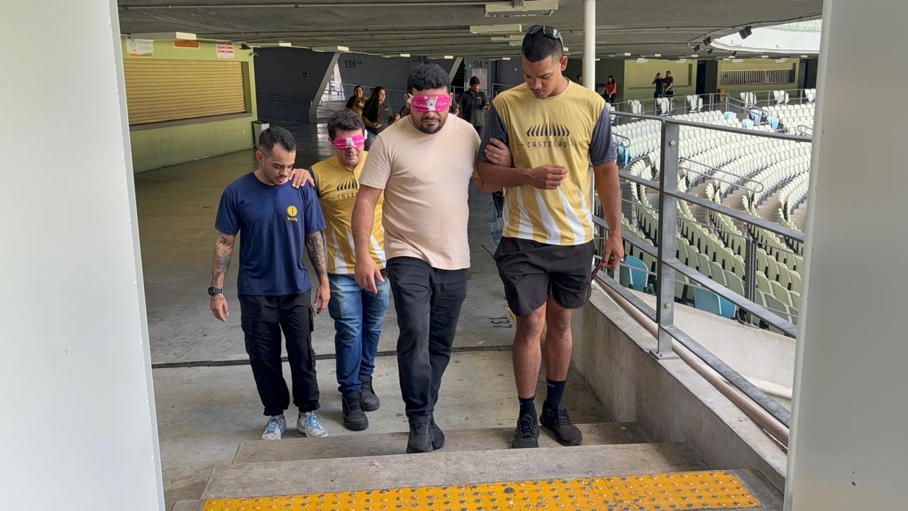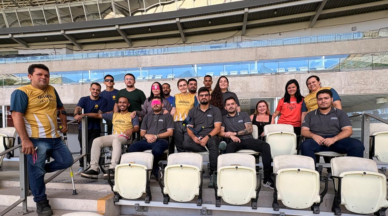 Nesta quinta-feira (26), os colaboradores da Arena Castelão participaram de uma vivência de acessibilidade nos setores do equipamento, com o objetivo de gerar uma experiência e enfrentar os desafios das pessoas com deficiência e alinhar com o manual da Federação Internacional de Futebol (FIFA).