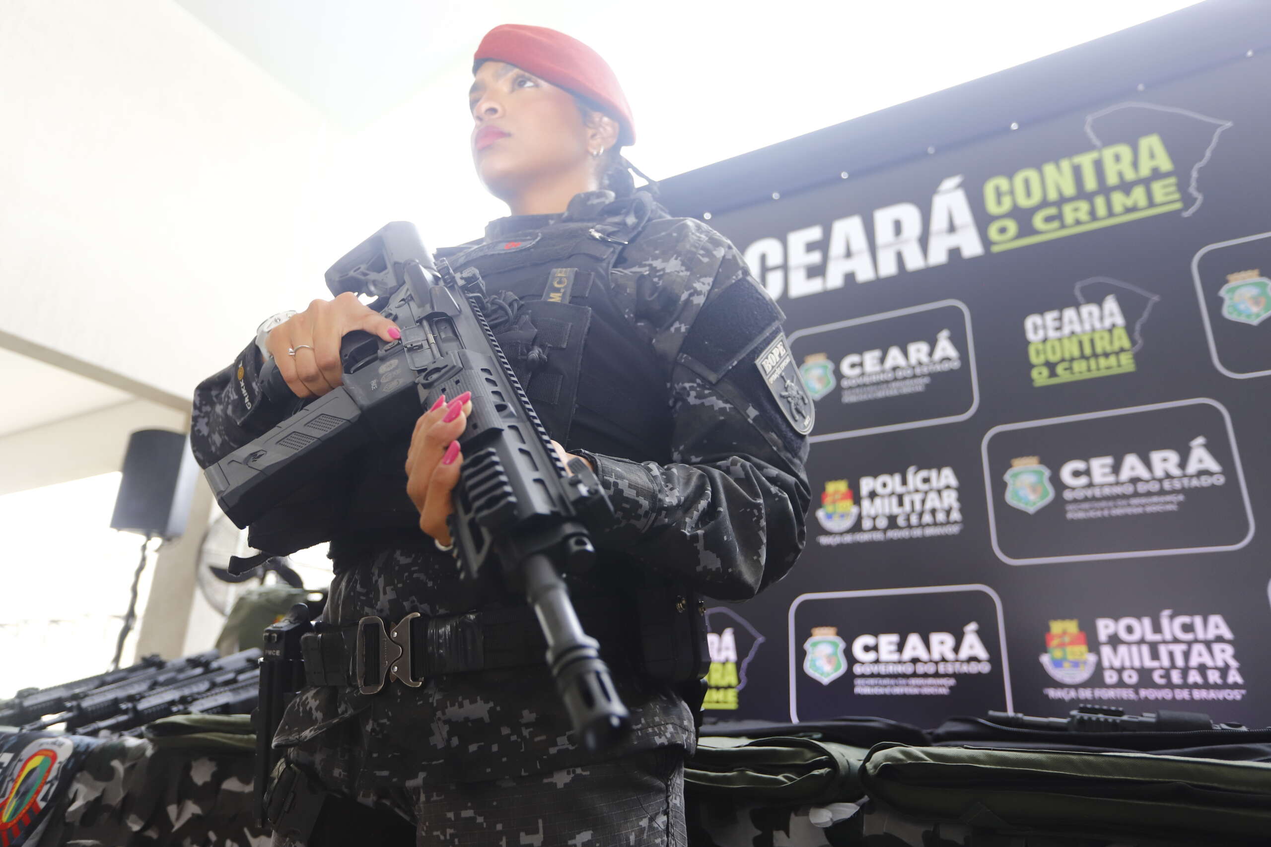 Reforço para o combate ao crime no Ceará. Nesta segunda-feira (30), o Governo do Estado entregou 94 novas armas de grosso calibre e 4.416 coletes de proteção balística para a Polícia Militar do Ceará (PMCE). A entrega ocorreu no Complexo do Comando de Polícia de Choque (CPChoque), em Fortaleza, com a participação da cúpula da Segurança Pública.