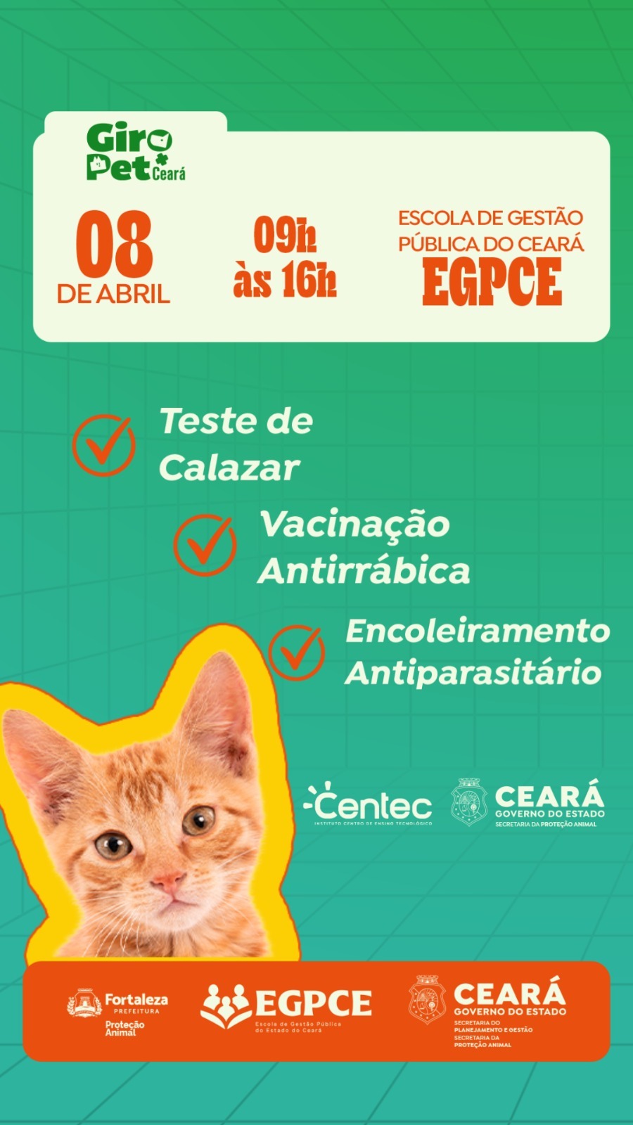 Como destaque da ação, será realizado o GiroPet, programa da SEPA, com uma série de serviços gratuitos voltados à população. A atividade será aberta à participação da sociedade civil, permitindo que tutores levem seus pets para atendimento na sede da EGPCE. Entre os serviços ofertados estão a vacinação antirrábica, o encoleiramento antiparasitário (mediante avaliação veterinária no local) e o teste de calazar. Não será necessário agendamento prévio, sendo o atendimento realizado por ordem de chegada, mediante distribuição de senhas.