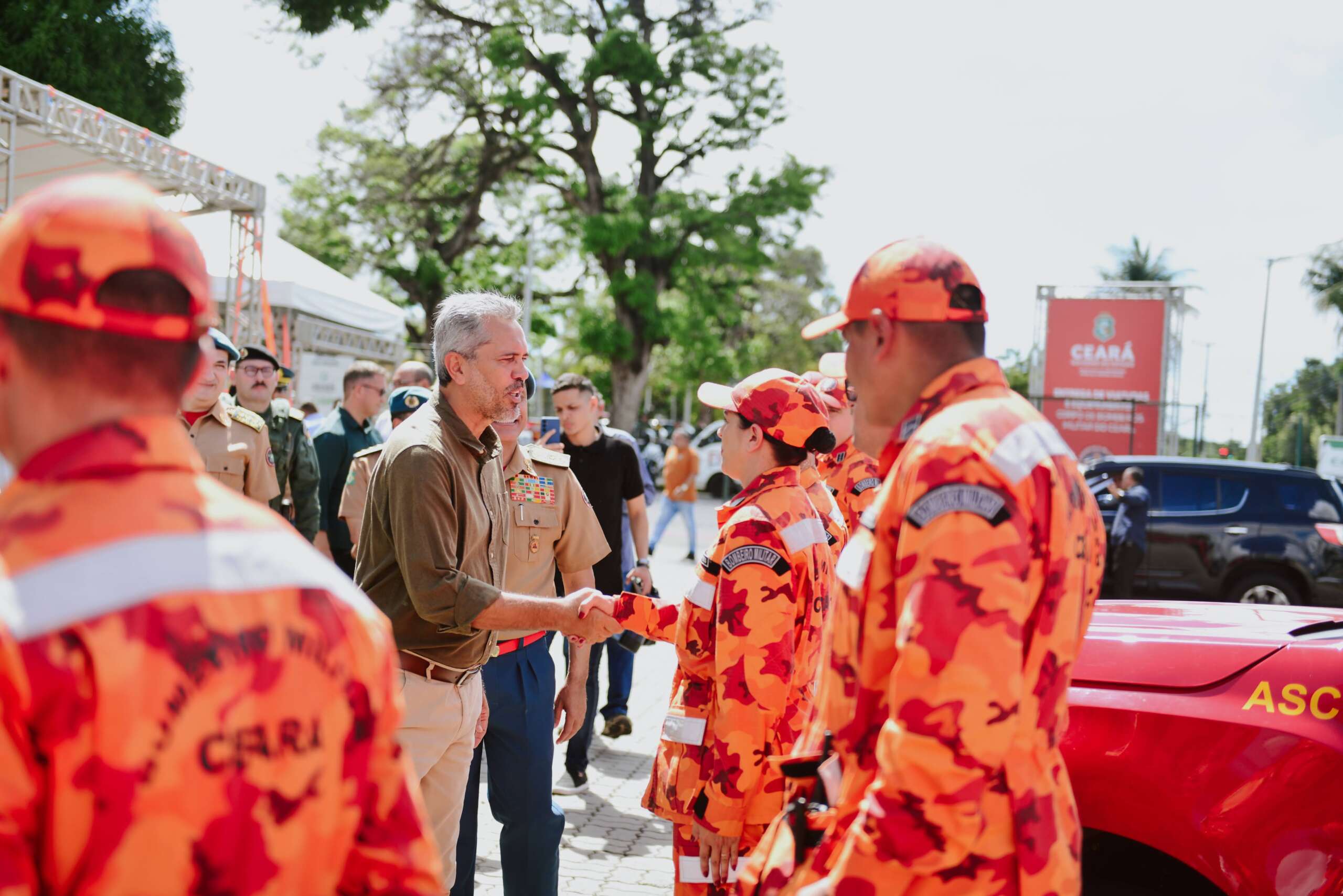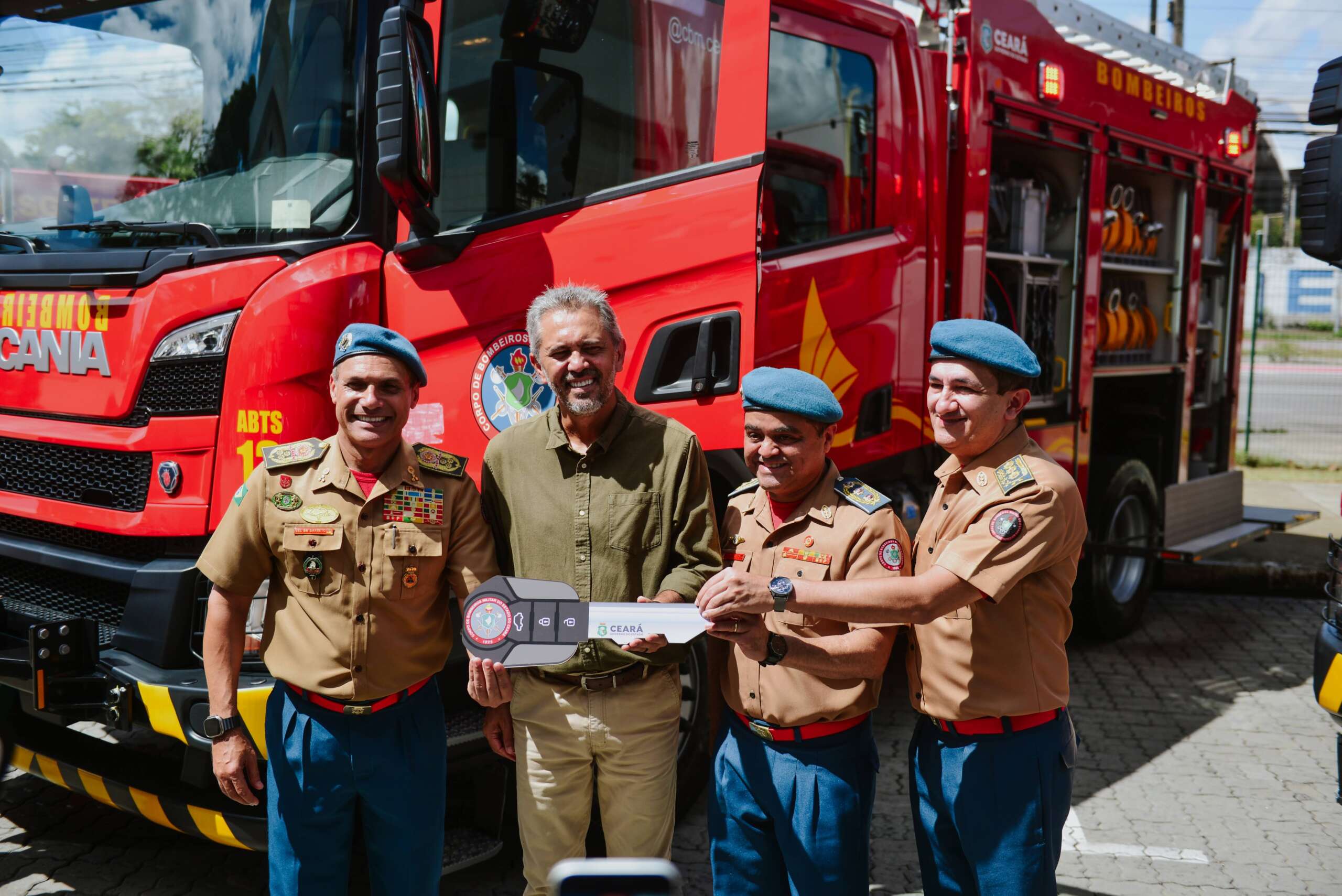 Mais investimentos para a segurança pública. Na manhã desta quarta-feira (8), o Governo do Ceará entregou 11 viaturas e mais de 5 mil equipamentos para o Corpo de Bombeiros Militar do Estado do Ceará (CBMCE). O investimento, de quase R$ 21 milhões, visa fortalecer a atuação da corporação no dia a dia. A entrega ocorreu no Quartel Central do CBMCE, no Centro Integrado de Segurança Pública (Cisp), e contou com as presenças do governador Elmano de Freitas; do secretário-executivo de Inteligência e Defesa Social da SSPDS, Alzir Chaves; do comandante-geral do CBMCE, coronel Cláudio Barreto; entre outras autoridades.