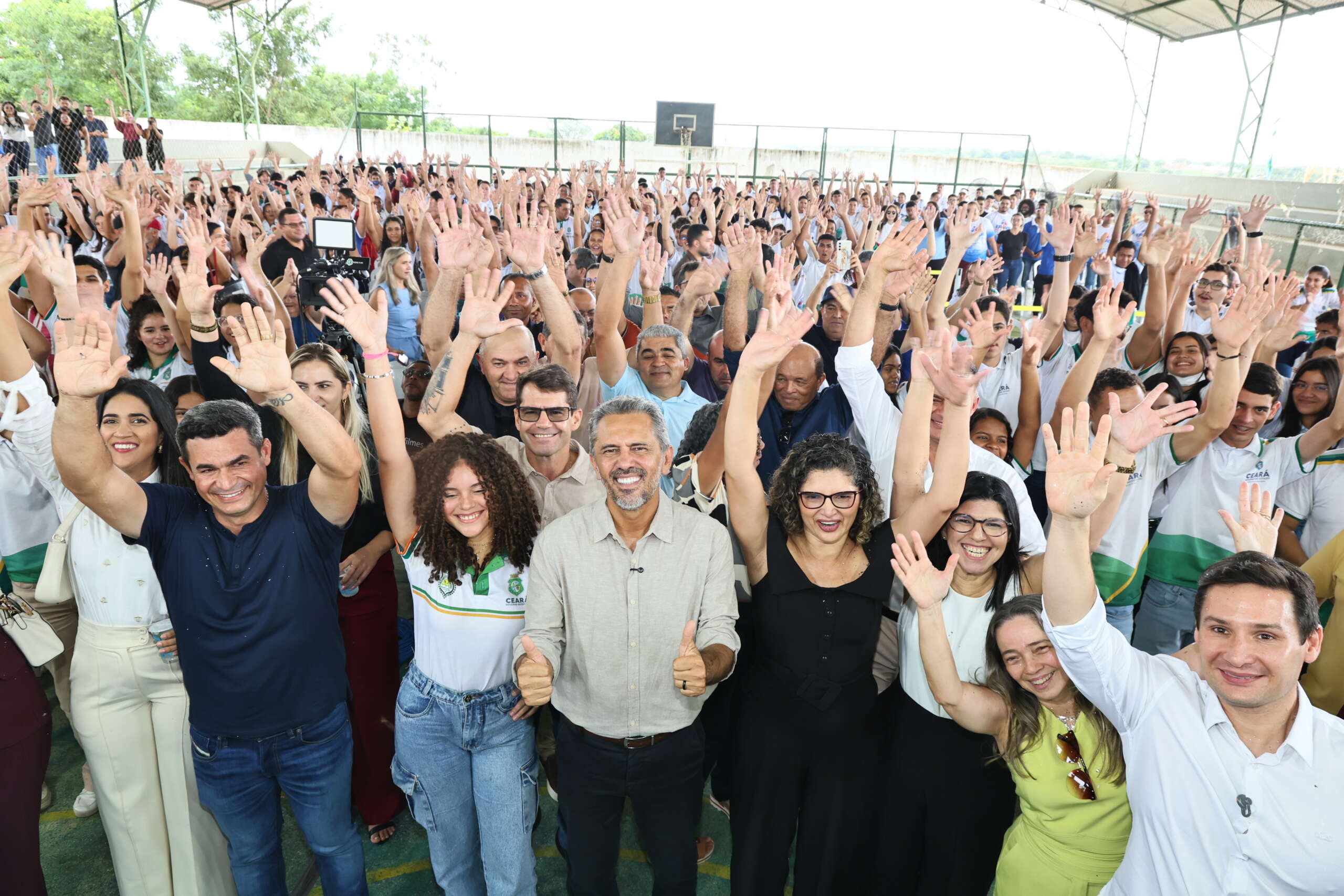 Feliz por estar realizando tantas entregas na região, o governador Elmano de Freitas ressaltou a importância do momento. “Estou muito feliz de estar aqui, porque são políticas que promovem avanço, principalmente na educação. Para mim, que vim do Interior, é algo de muito orgulho. Estou aqui para festejar essa juventude e a parceria com os municípios em prol da população”, destacou.