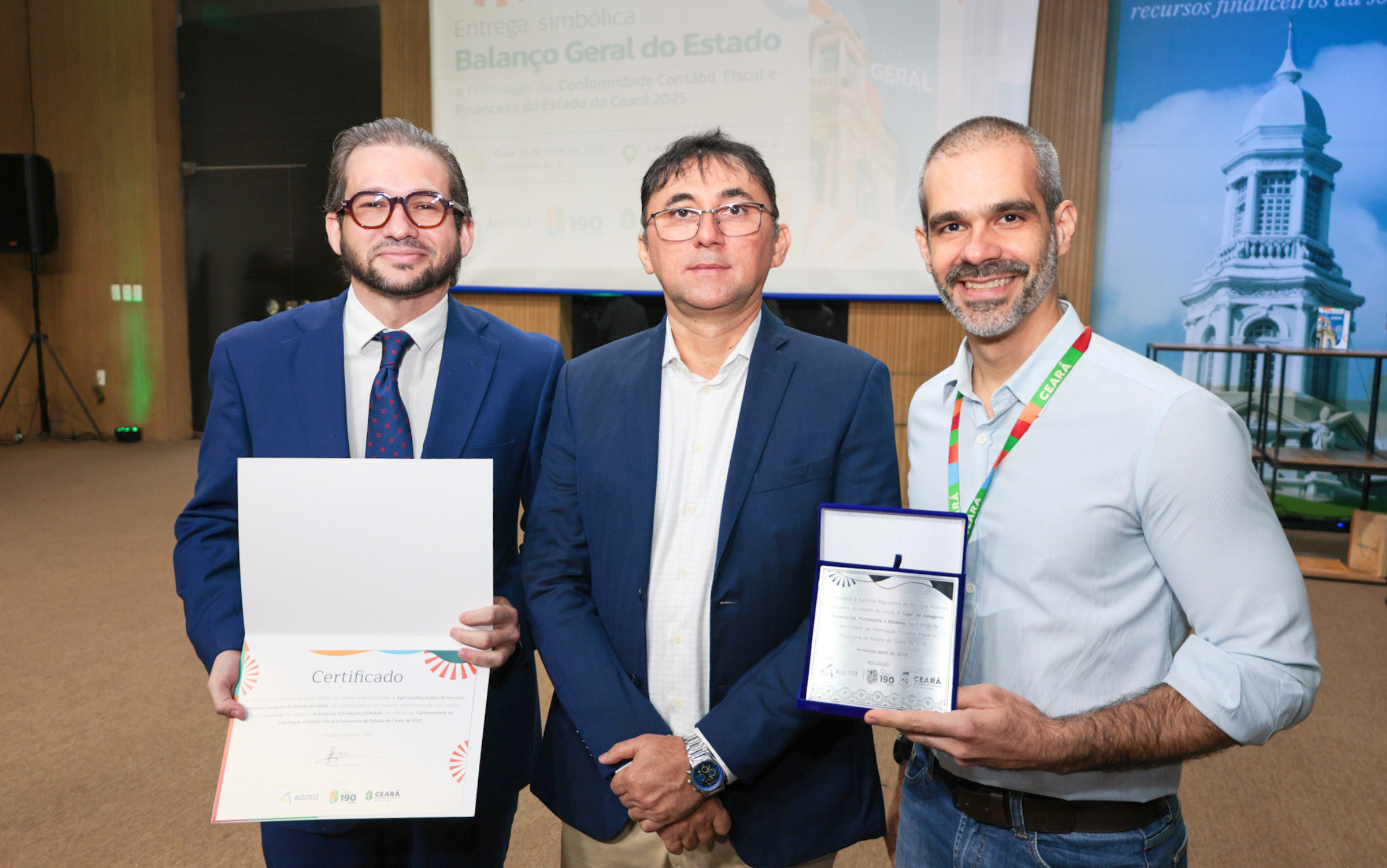 A Agência Reguladora do Estado do Ceará (Arce) conquistou o primeiro lugar na categoria Autarquias Estaduais no Ranking de Conformidade da Informação Contábil, Fiscal e Financeira, alcançando o índice de 95,45% de execução orçamentária e garantindo o selo de conformidade “A”. O reconhecimento aconteceu durante a Solenidade de Entrega do Balanço Geral do Estado – Exercício 2025, promovida pela Secretaria da Fazenda do Ceará (Sefaz), realizada no dia 10 de abril de 2026, no auditório da própria Secretaria, em Fortaleza.