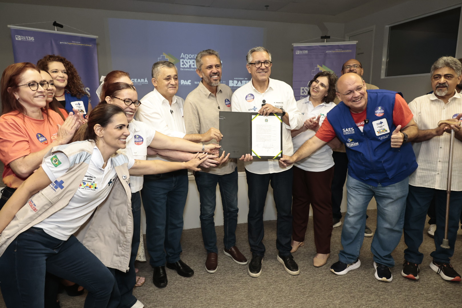 O Ceará deu mais um passo importante no fortalecimento da saúde pública estadual neste sábado (18), com a assinatura da portaria de credenciamento e habilitação de 330 novos leitos do Hospital Universitário do Ceará (HUC), em Fortaleza. A solenidade contou com a presença do governador Elmano de Freitas, dos ministros Alexandre Padilha, da Saúde, e José Guimarães, da Secretaria de Relações Institucionais do Brasil, da secretária estadual da Saúde, Tânia Mara, deputada federal Fernanda Pessoa, além de técnicos da Sesa e do Ministério da Saúde.